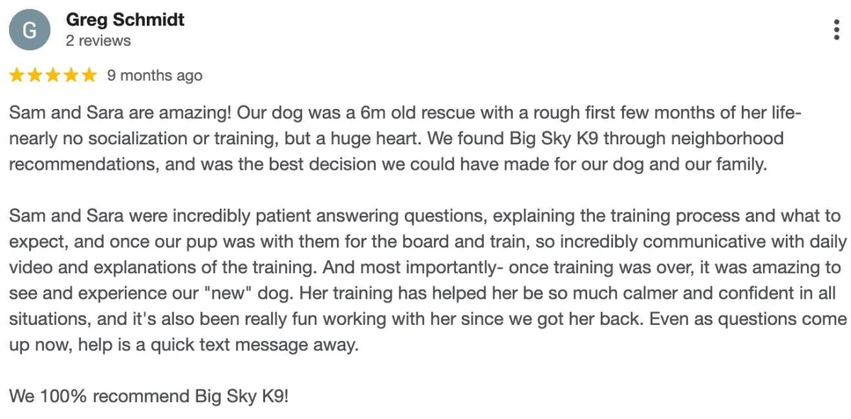 🐾 Next-Step Training Recommendations If we’re the right fit, you’ll know exactly what comes next to turn your dog into the well-behaved pet you’ve always wanted.